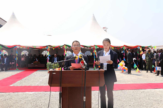 倫古總統(tǒng)和王彤宙董事長(zhǎng)為投產(chǎn)紀(jì)念牌揭牌