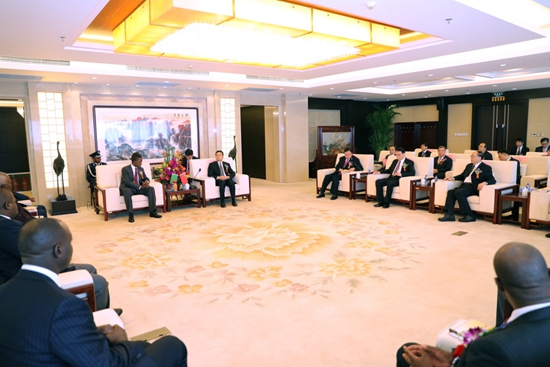 論壇期間,肖亞慶主任與出席論壇的全國政協外事委員會副主任李保東、全國工商聯副主席王永慶、中國有色金屬工業協會會長陳全訓、中國人民對外友好協會副會長林怡、中國駐贊比亞大使李杰等嘉賓進行了深入交流。