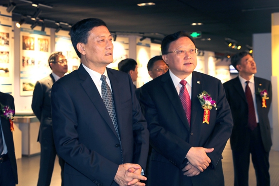 王彤宙董事長等領導陪同肖亞慶主任參觀中國有色集團展廳